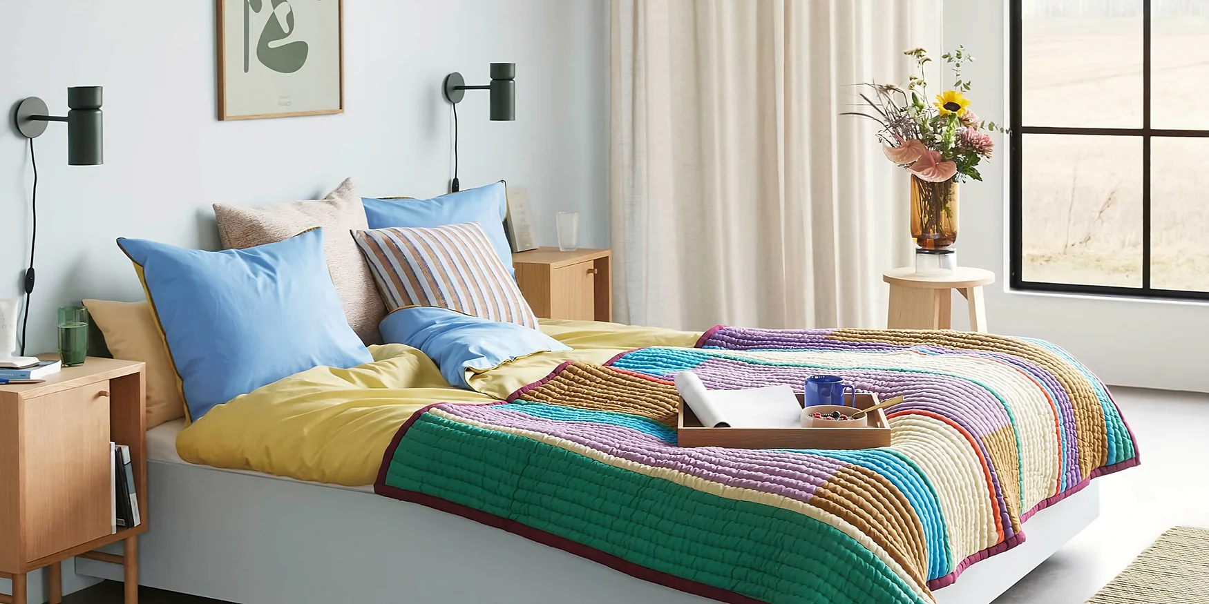 Đắm mình trong chiếc giường trang trí với bộ khăn trải giường sang trọng, sự kết hợp giữa chất liệu vải xa hoa và đồ nội thất được sắp xếp hợp lý để tạo nên một thiên đường ngủ xa hoa. Lấy cảm hứng và biến nhạt nhẽo thành hạnh phúc.